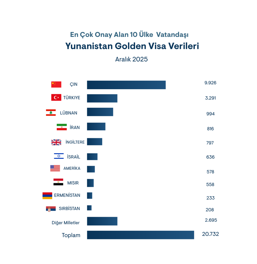 Aralık 2025 itibarıyla, Daimi Yatırımcı Oturum İzni programı (4251/2014 sayılı yasa) kapsamında ana başvuru sahiplerine verilen geçerli Yunanistan Golden Visa oturum izinlerinin toplam sayısı 27.786’ya ulaşmıştır.
